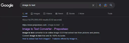 Both these searches will yield similar results. You can just pick up the top tool. In this case, we picked the first image to text converter in the search results.