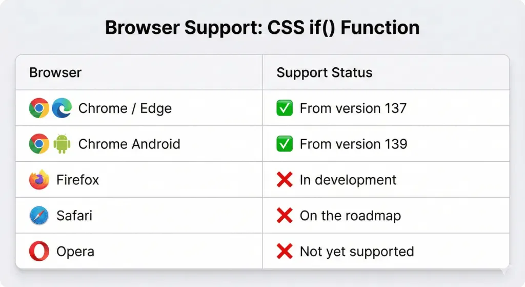 We must address the elephant in the room: Support.As of late 2025, the CSS if() function is in the experimental prototype phase. It is not part of the official W3C CSS specification yet, but it has been implemented in Chrome Canary behind a flag for testing.