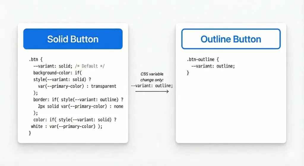 Design systems often have “Solid”, “Outline”, and “Ghost” buttons. Traditionally, this requires a base class and variant classes.With if(): You can handle the logic entirely within the border and background properties.