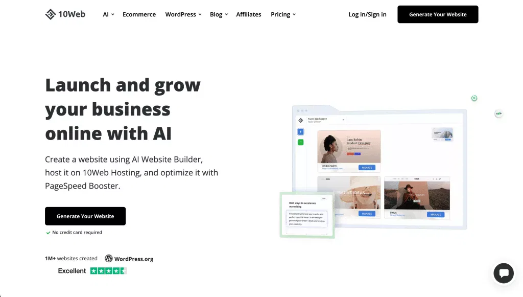 10 Web is a platform that lets you create and customize websites with AI, host them on fast and secure hosting, and optimize them with PageSpeed Booster. You can also use AI tools to generate content, images, names, strategies, and more for your business. 10 Web is powered by Google Cloud and supports WordPress websites. You can also access over 40 premium plugins and themes, as well as get 24/7 support and backup. 10 Web is the ultimate solution for building and managing websites with AI.