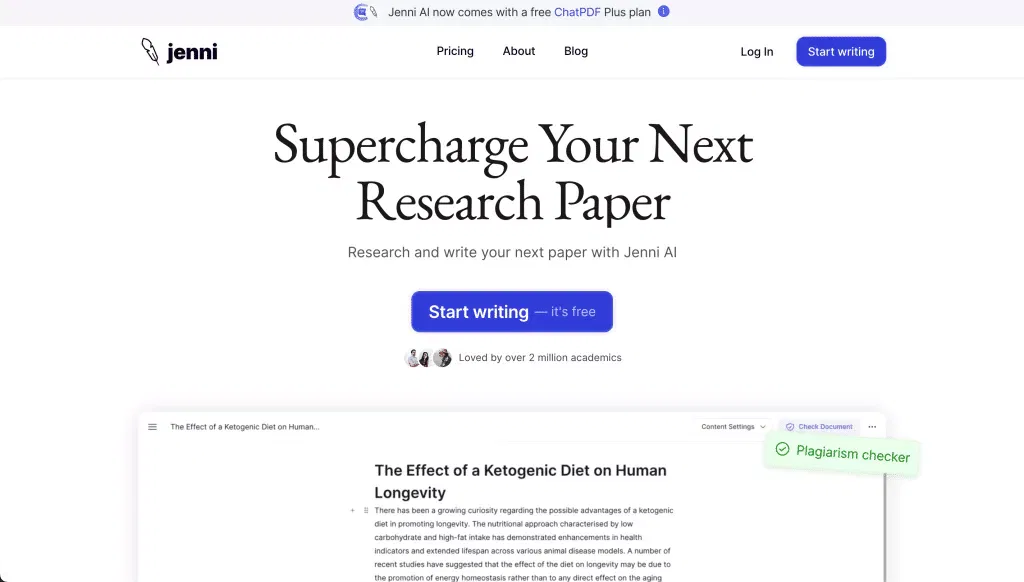 Jenni AI is a powerful tool that helps you write, cite, and edit your academic and professional documents with features like autocomplete, in-text citations, paraphrase, chat, outline builder, and more. Jenni AI is trusted by universities and businesses across the world and supports various citation styles and languages. Jenni AI also offers a free AI essay writer that helps you beat writer’s block and assist in writing well-referenced essays. Whether you want to write a research paper, a report, a resume, or a cover letter, Jenni AI can help you do it faster and better.